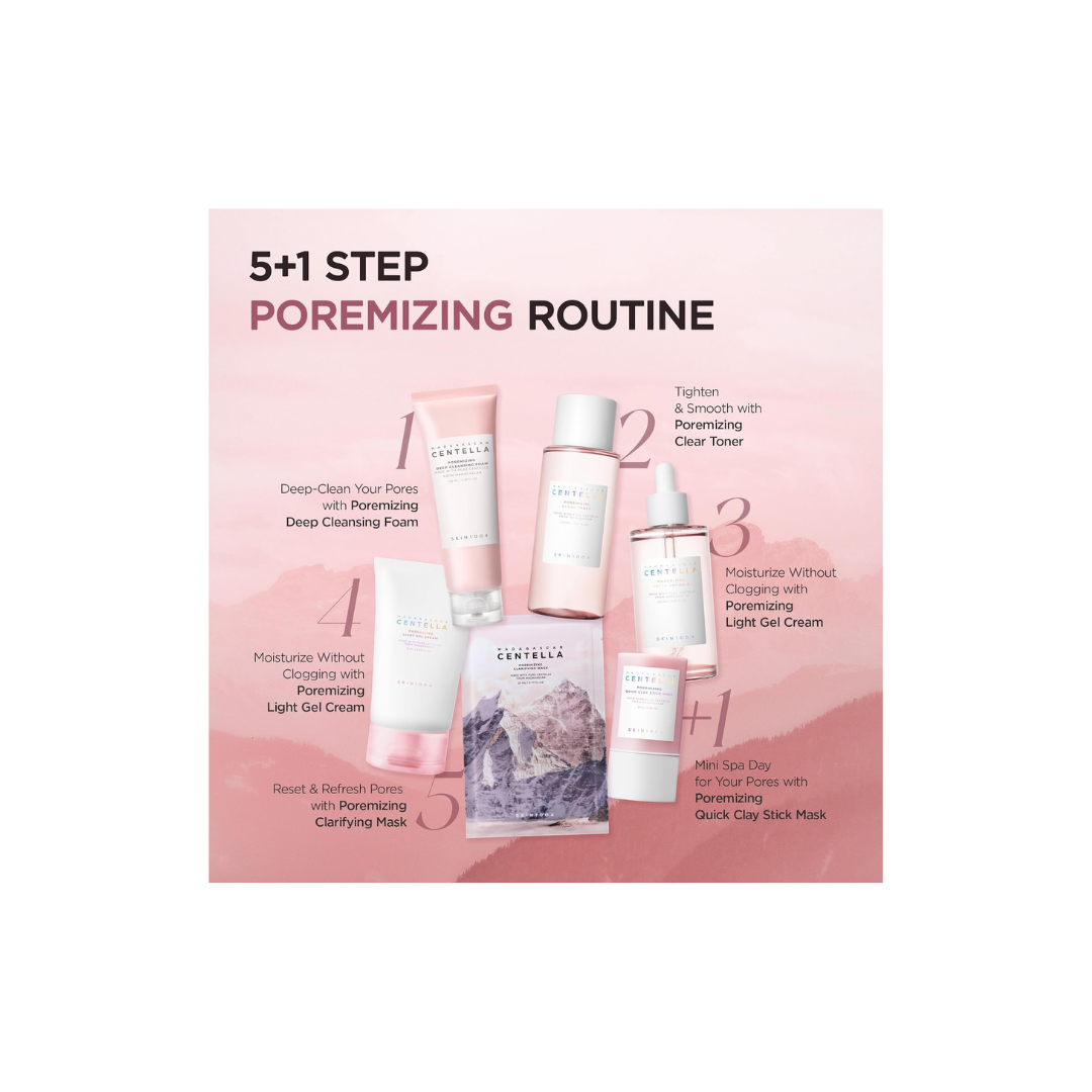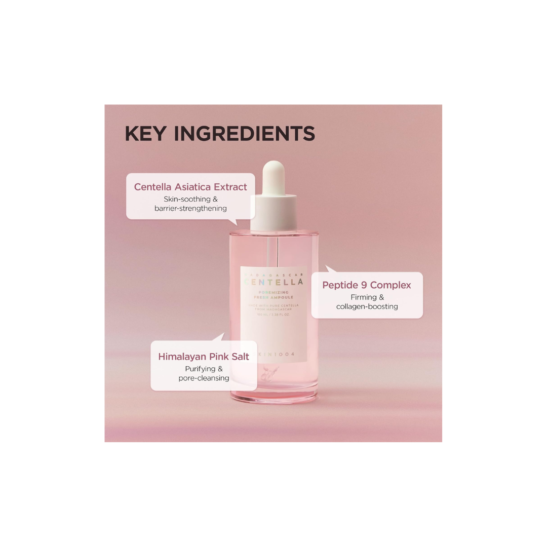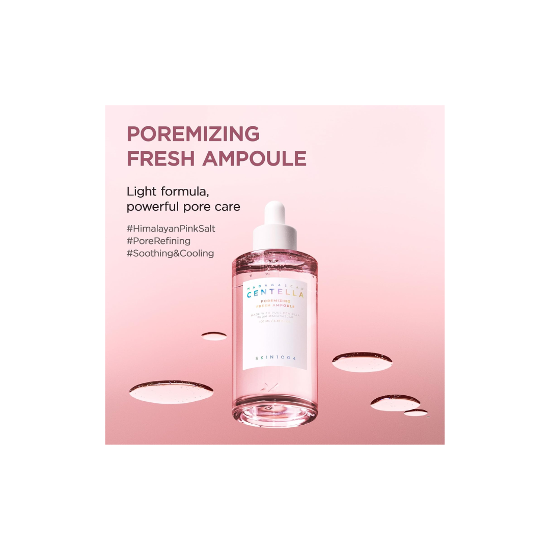 A refreshing ampoule formulated with Madagascar Centella Asiatica extract and Himalayan Pink Salt to deeply cleanse, tighten, and minimize the appearance of pores. It helps balance excess sebum, soothe irritation, and provide lightweight hydration, leaving skin smooth, fresh, and refined. Perfect for oily and combination skin types concerned with visible pores.